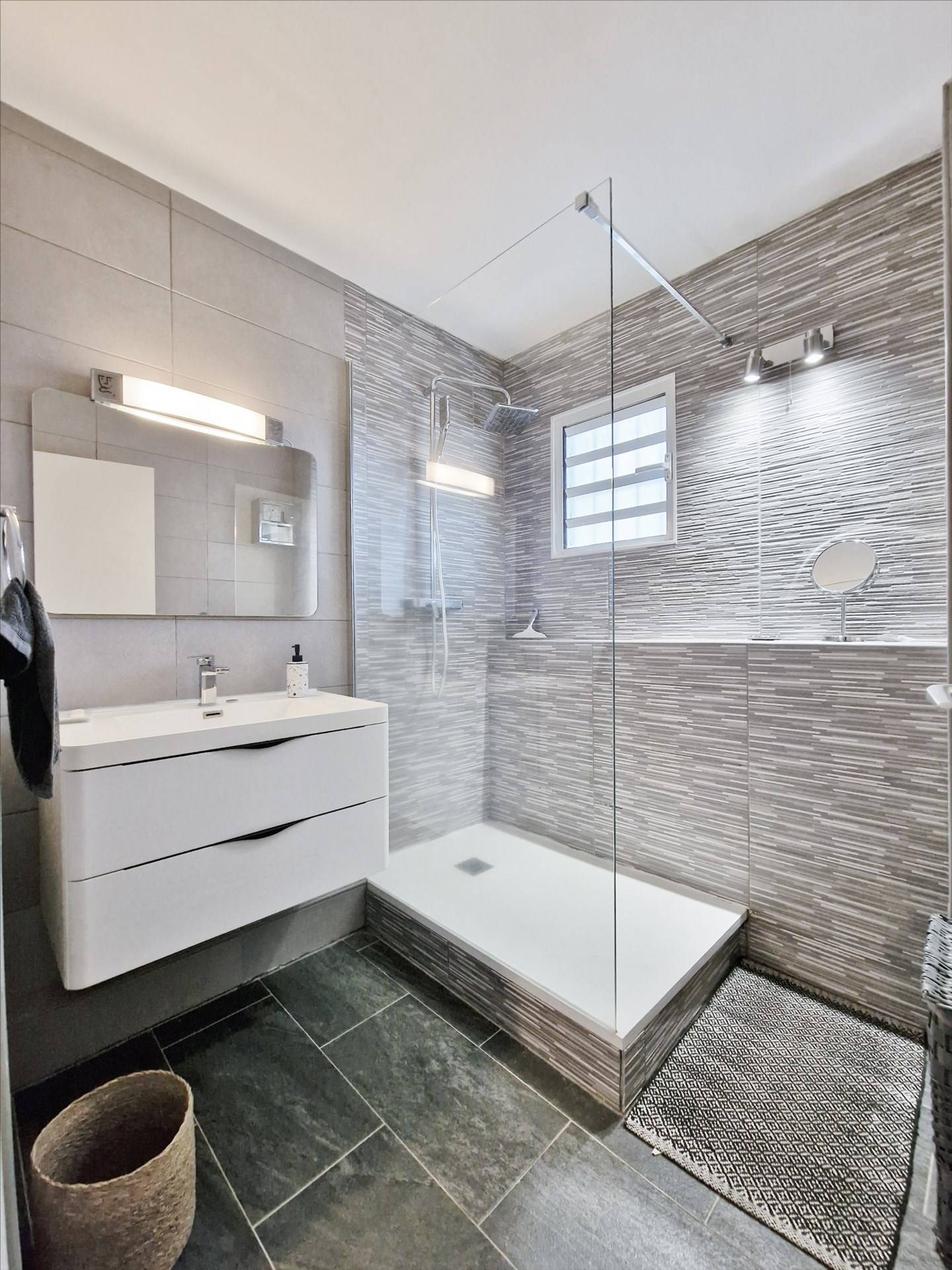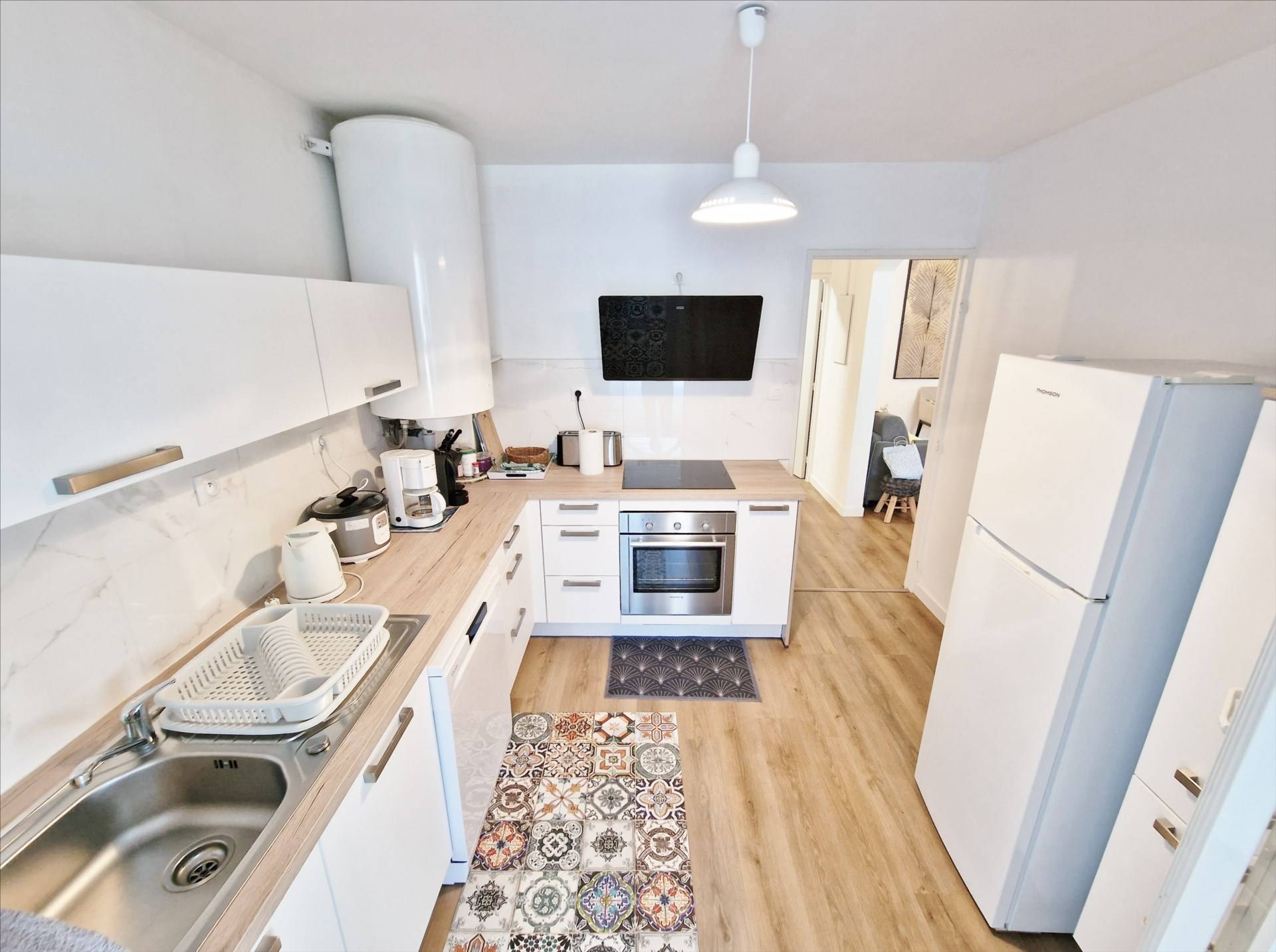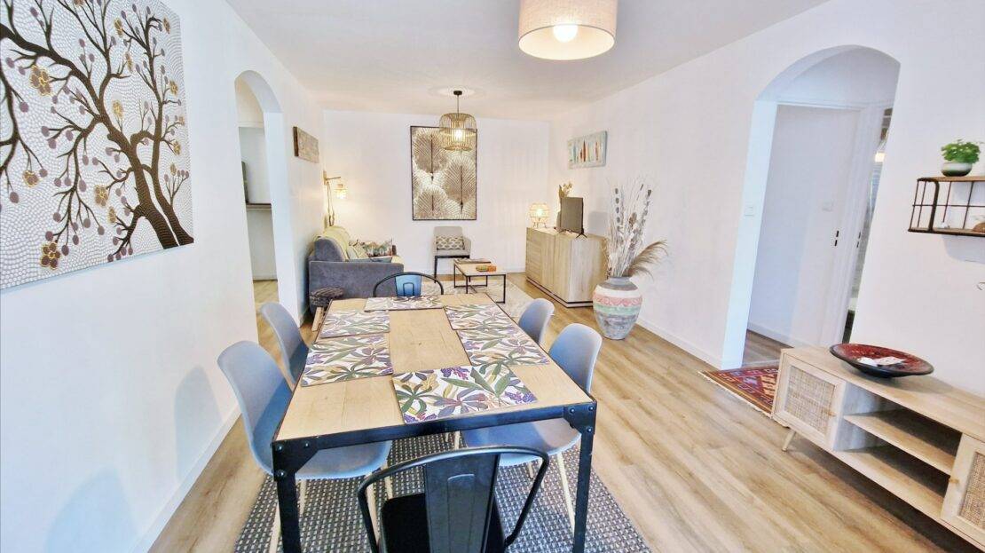 Il dispose, d’une éntrée, d’un beau séjour bien lumineux, une cuisine équipée, une buanderie, une varangue ferméee, 2 chambres, une salle de bains récente avec une douche à l’italienne, un wc et une terrasse d’environ 11m².