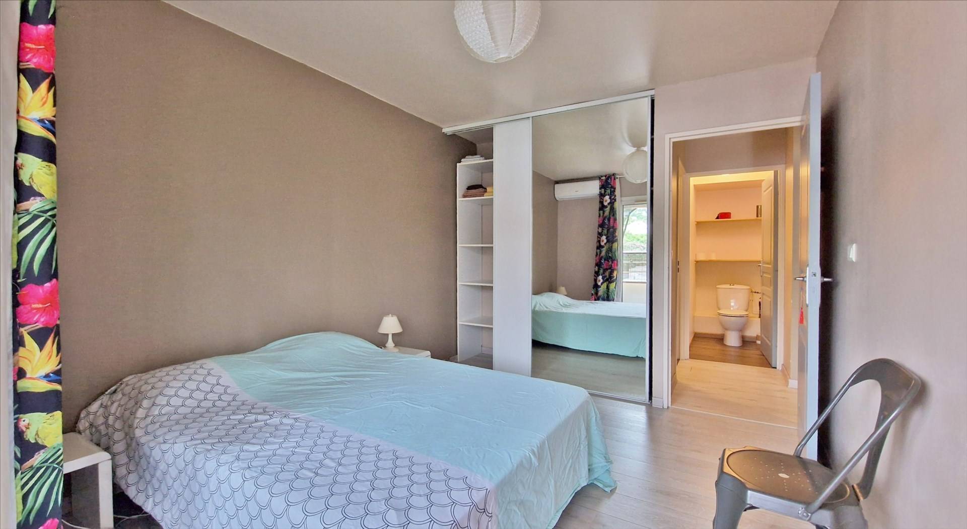 Il se compose d’une entrée, d’un séjour très lumineux, unecuisine équipée semi ouverte, une belle chambre avec climatisatio net placards, une salle de bains avec lave linge, un wc séparé et une garnde varangue avec vue montagne d’environ 14m²