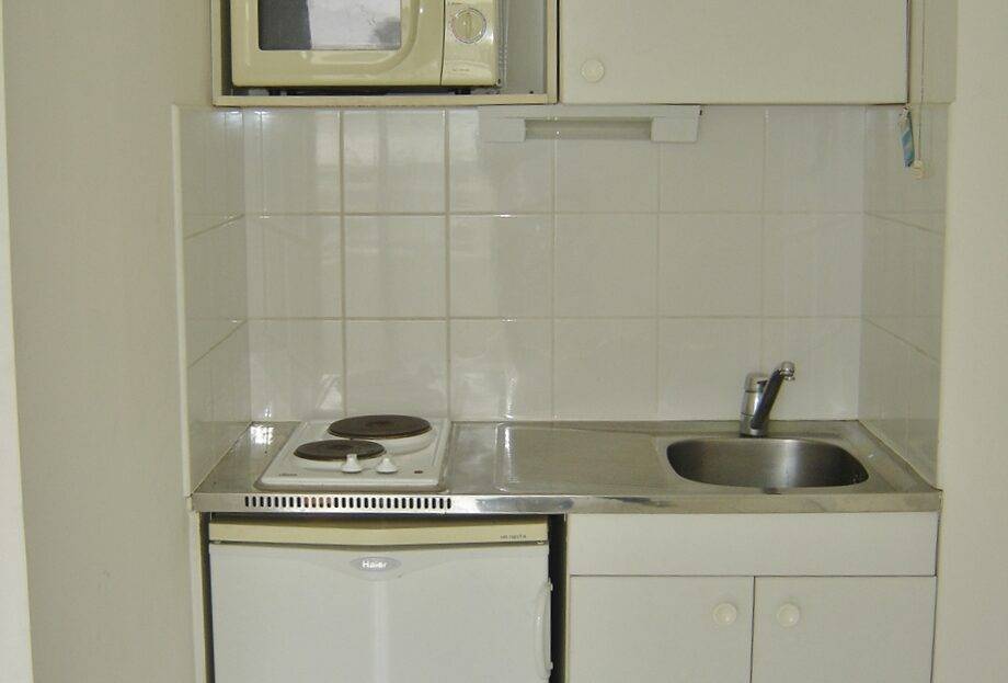 Vous découvrirez un séjour avec climatisation et placards, un coin kitchenette équipée de plaques de cuisson, mini-frigo, micro-ondes et rangements).