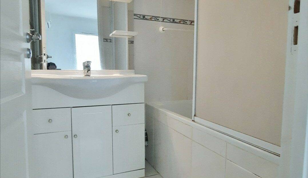 Entrée et séjour d’environ 25m², cuisine séparée et équipée (plaques, hotte et nombreux rangements). Une chambre avec climatisation et placards.