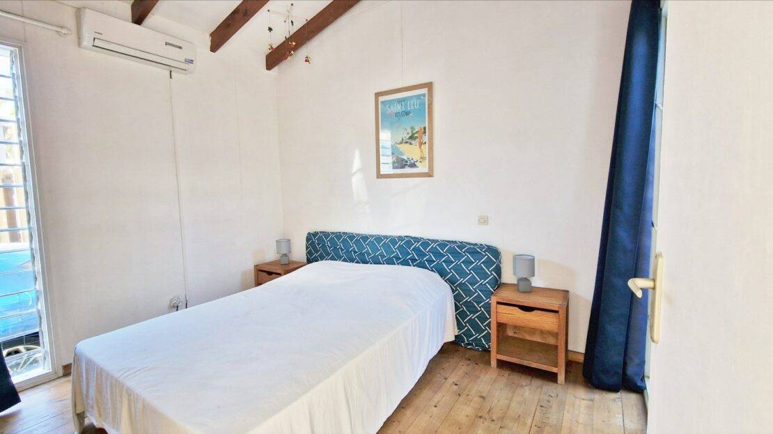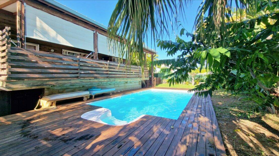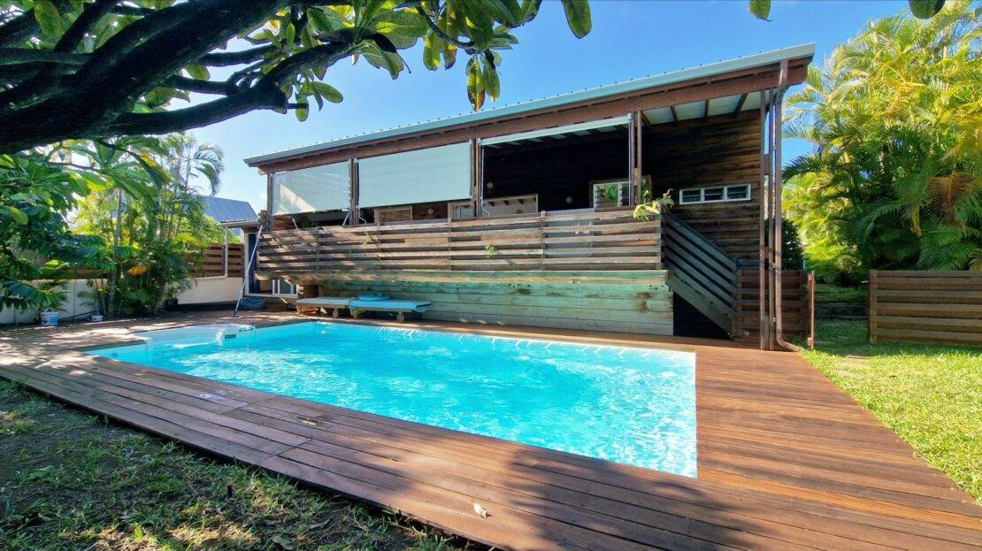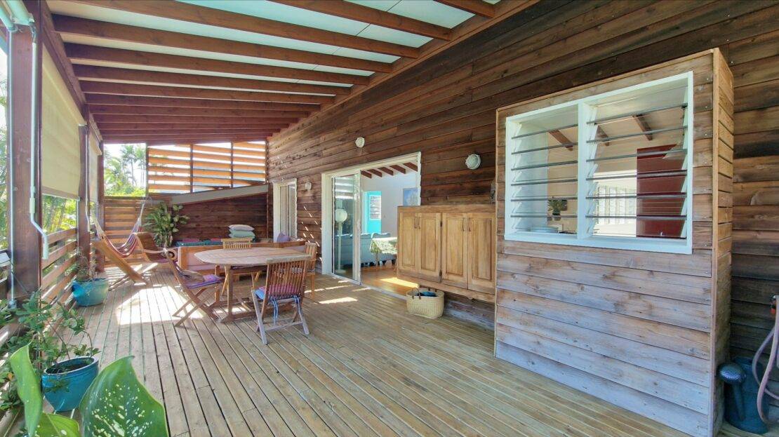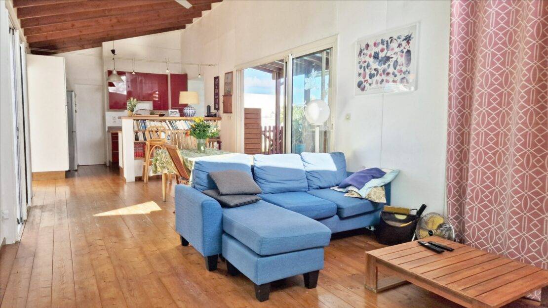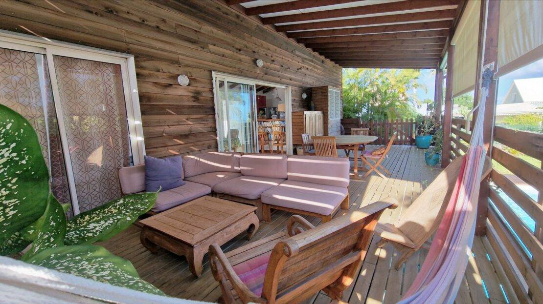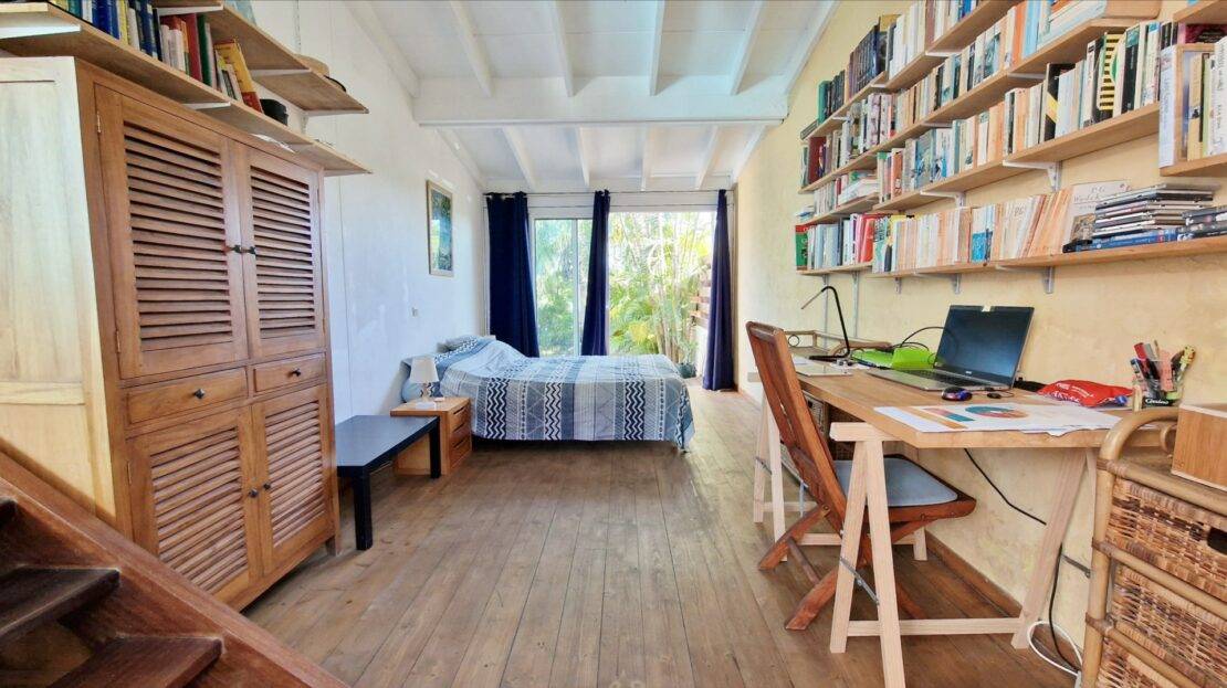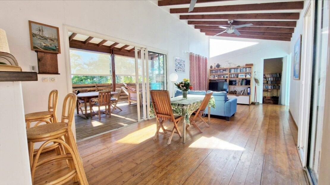 Maison bioclimatique, aérée et lumineuse, elle comprend un séjour spacieux donnant sur une grande varangue de 40m², une cuisine toute équipée avec cellier séparé, 5 chambres, 2 salle de bains, 2 wc.