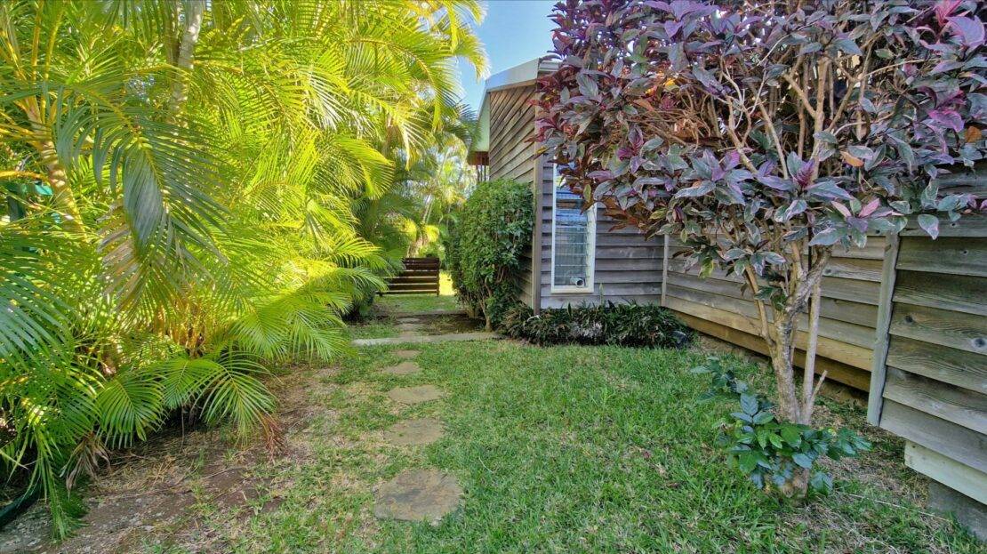 Une partie jardin arborée à l’avant de la maison, ans vis-à-vis, donnant sur la piscine.
