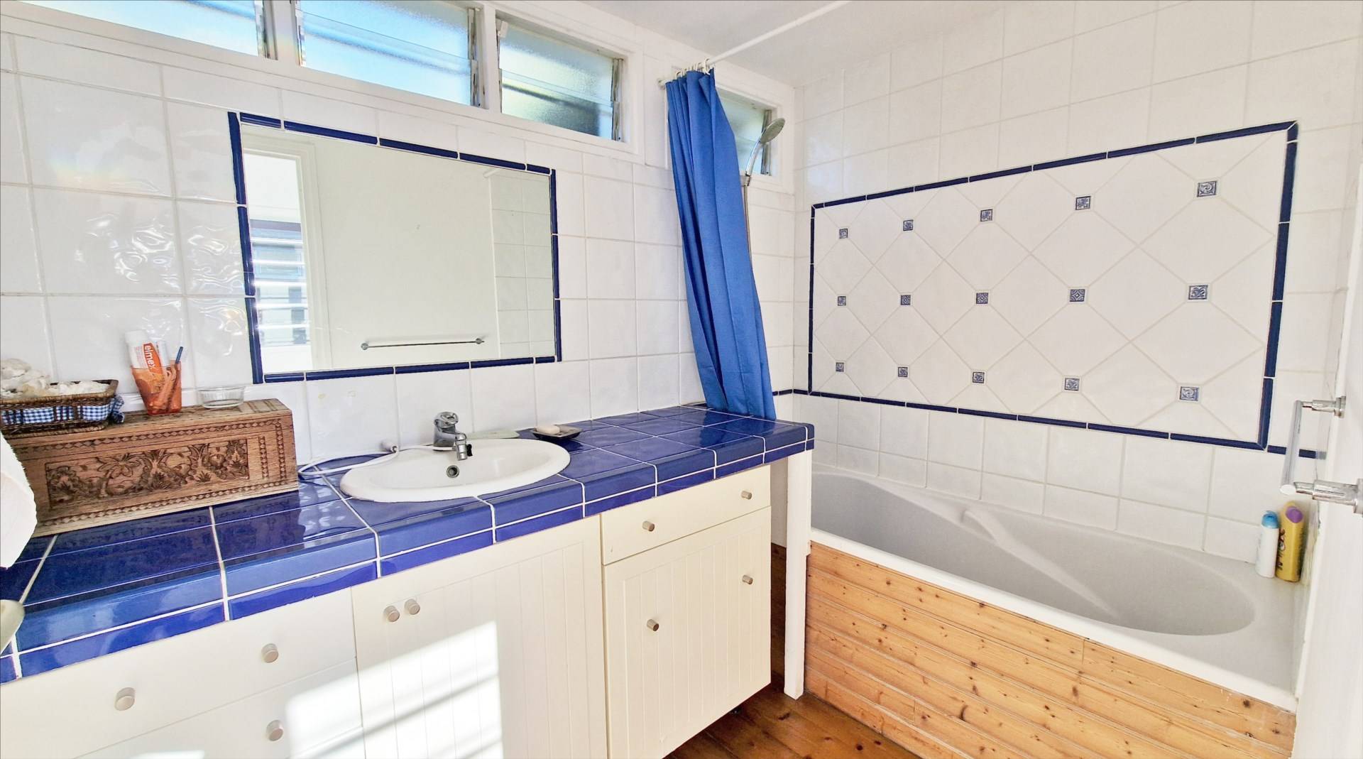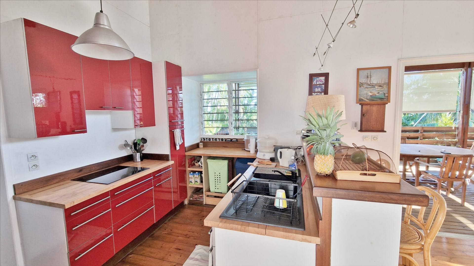 Maison bioclimatique, aérée et lumineuse, elle comprend un séjour spacieux donnant sur une grande varangue de 40m², une cuisine toute équipée avec cellier séparé, 5 chambres, 2 salle de bains, 2 wc.