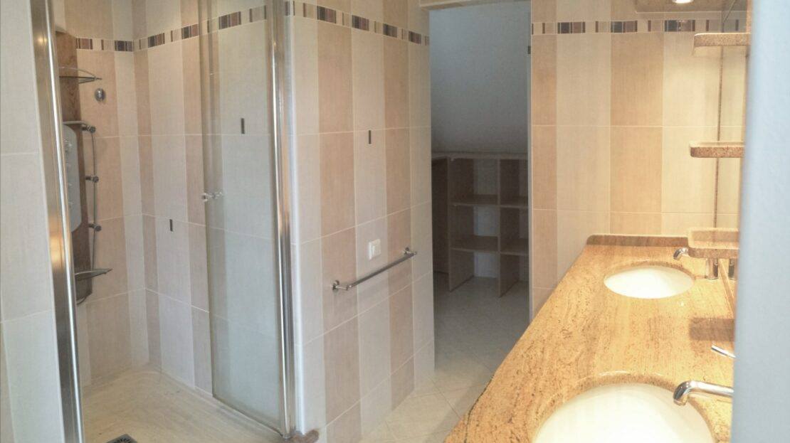 L’étage dispose de 2 belles chambres avec chacune sa salle de bains et dont une suite parentale d’environ 20m² avec sa superbe salle de bains balnéo et wc séparés.